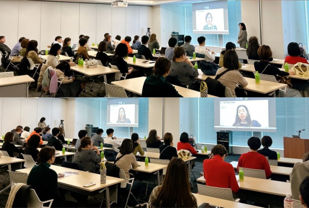 第1部は「Life and Work」をテーマにイギリス在住のマクギネス真美さん。第2部は「Lifelong learning」をテーマにカナダ在住のサヴィッチ笑子さんをお迎えして水野と対談を行いました。今回から司会も入れての本格的なセッションになりました。司会は弊社事務局宇野が担当しました。
